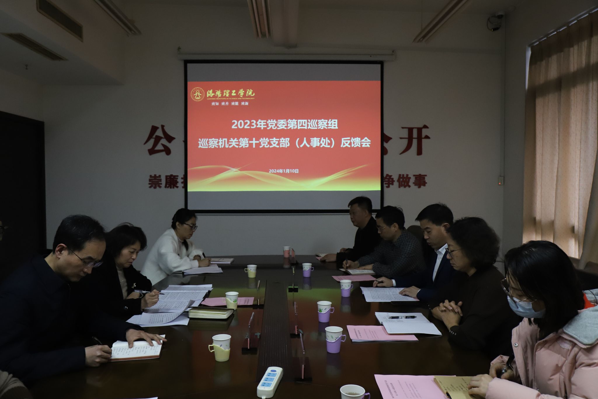 组织部部长戴建广、校巡察工作办公室副主任王继忠、第四巡察组全体成员出席会议,机关党委第十党支部全体党员干部参加了反馈会。