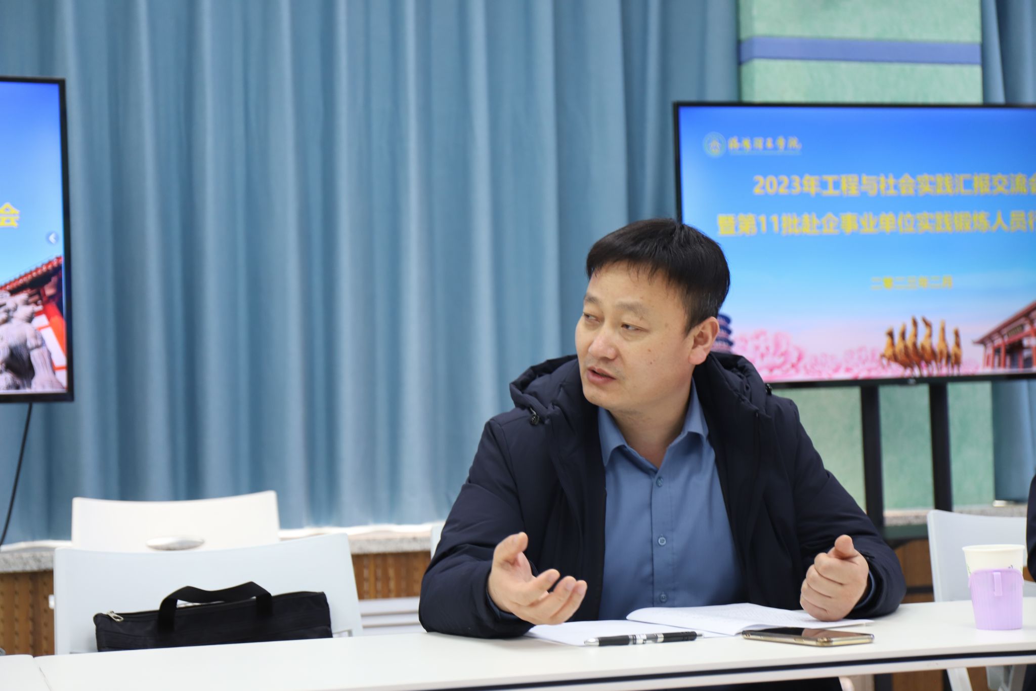 2023上半年工程与社会实践汇报交流会暨第11批赴企事业单位实践锻炼人员行前会议在王城校区教师发展中心智慧培训室举行。人事处副处长武建伟,教师发展科科长陈伟锋,第十批工程与社会实践、挂职锻炼考核优秀教师代表、各教美高梅娱乐场