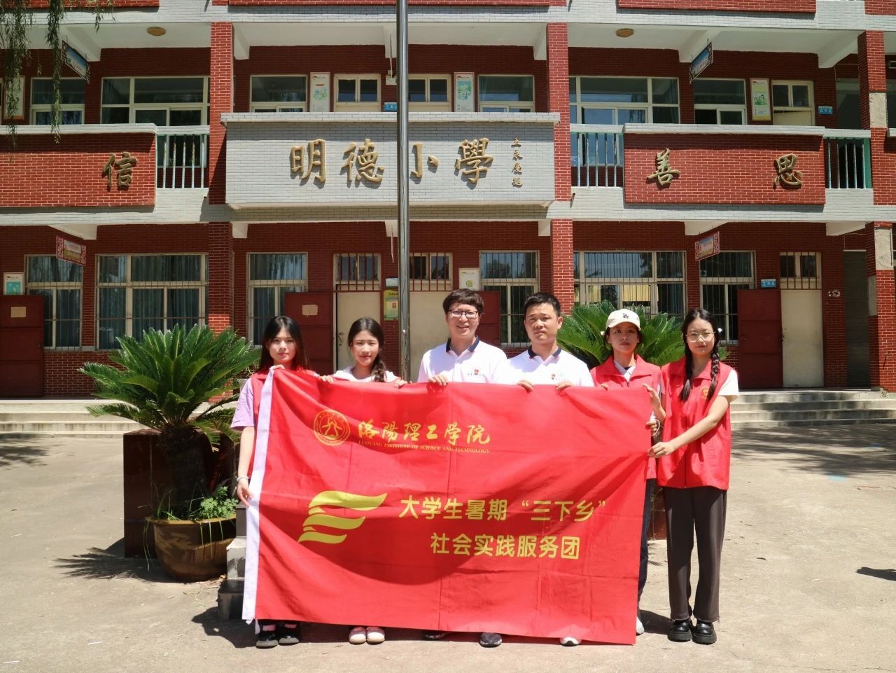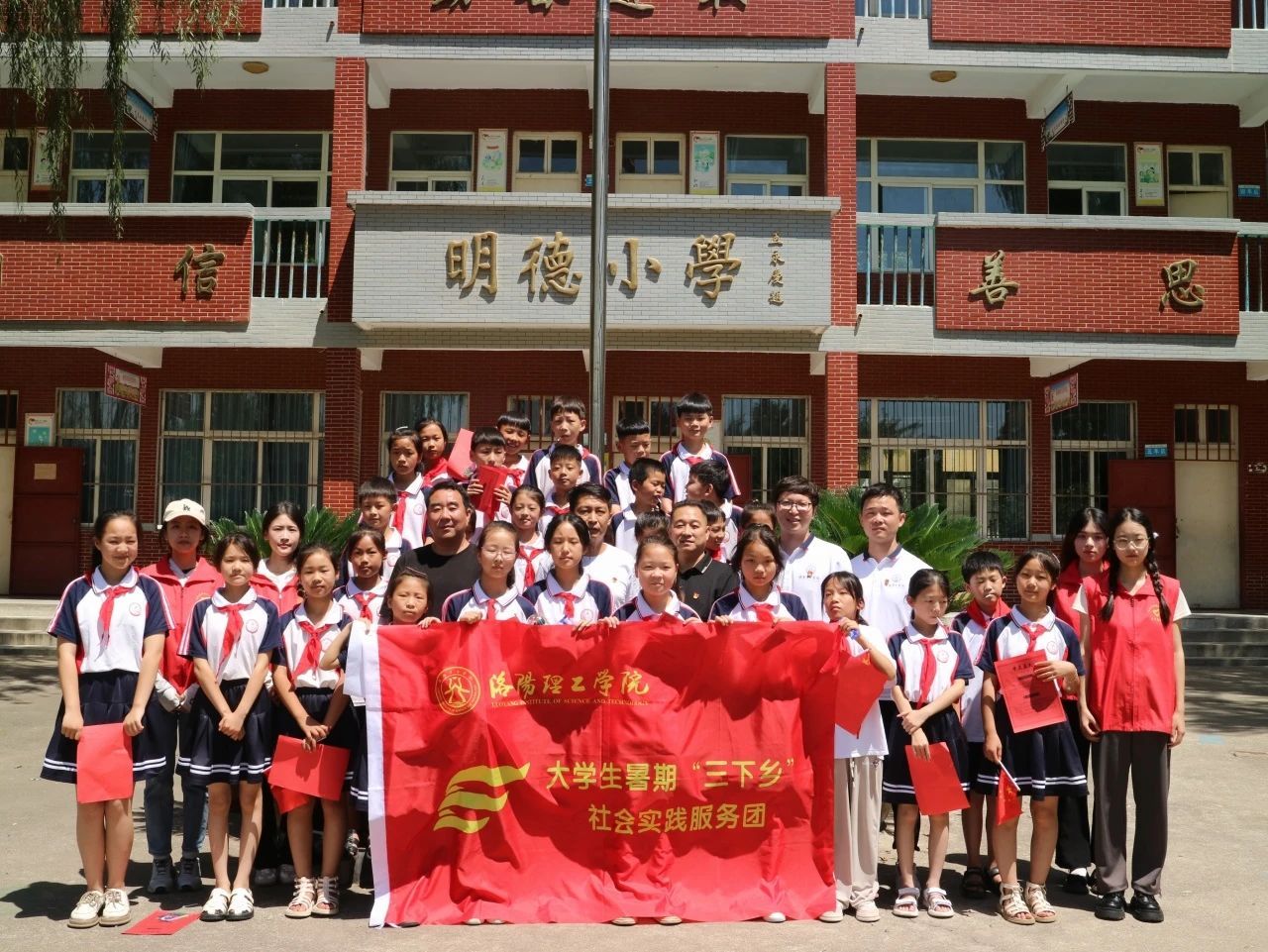 最后,实践团与明德小学师生一起在红旗下合影留念,为本次的三下乡宣讲实践活动画上圆满句号。