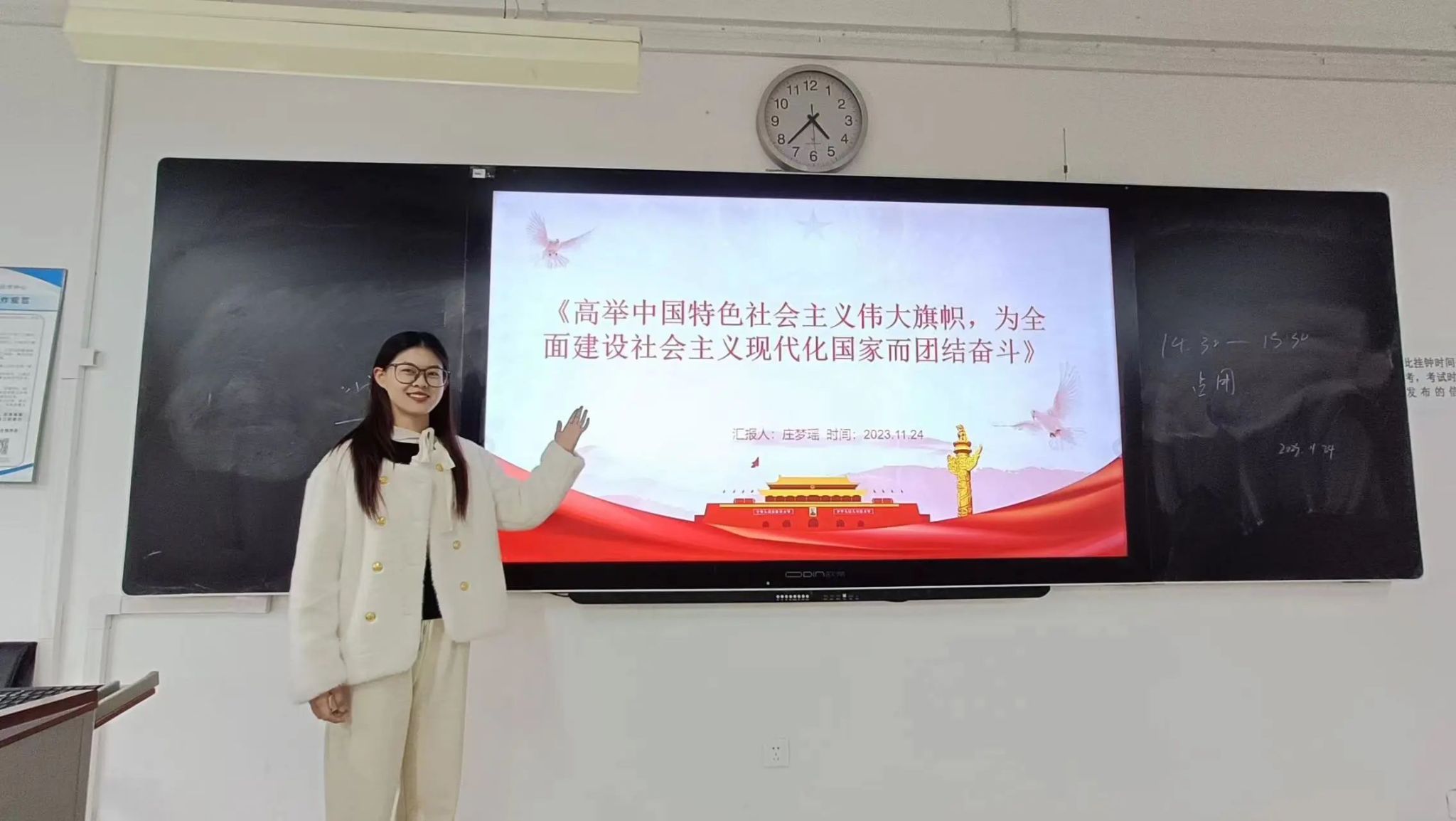于2023年11月24日16点30分在AN205开展以“高举中国特色社会主义伟大旗帜,为全面建设社会主义现代化国家而团结奋斗”为主题的研学活动。本次活动由灯塔研习社分社文新社成员庄梦瑶主持,人文与社会科学美高梅娱乐场