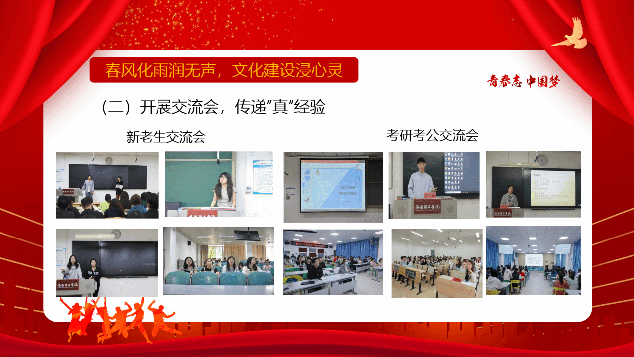 团委结合实际,通过组织开展新老生交流会、考研交流会、考公交流会、身边优秀人物事迹宣传等,扎实营造优良学风;先后邀请了著名作家马伯庸、马鸣谦、李自国等来美高梅娱乐场