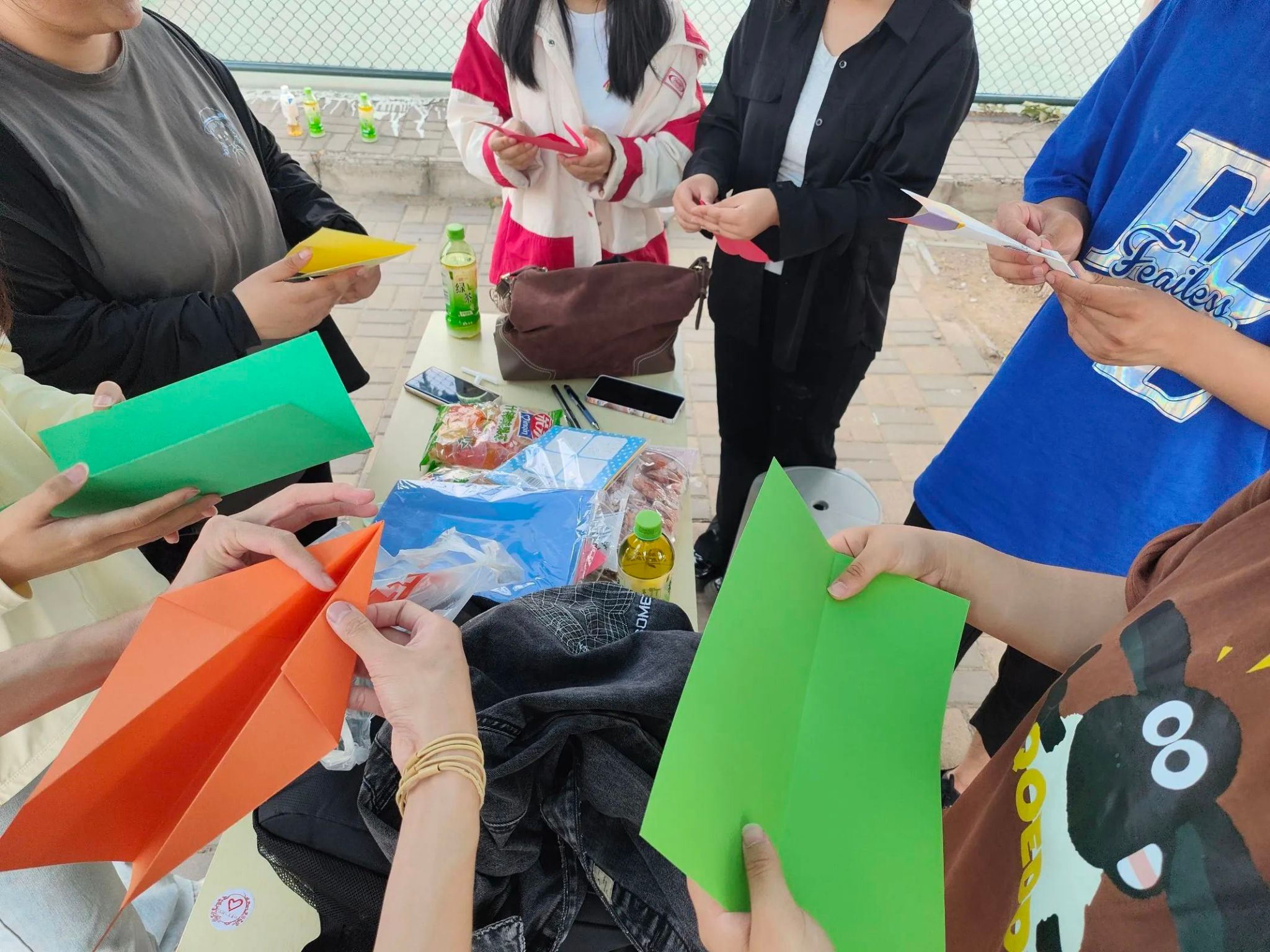 活动现场,一张张鲜艳多彩的折纸在同学们灵巧的手中“变身”为各式各样的纸飞机。同学们将自己的梦想或心声写在折纸上,用纸飞机寄托自己的美好心愿。