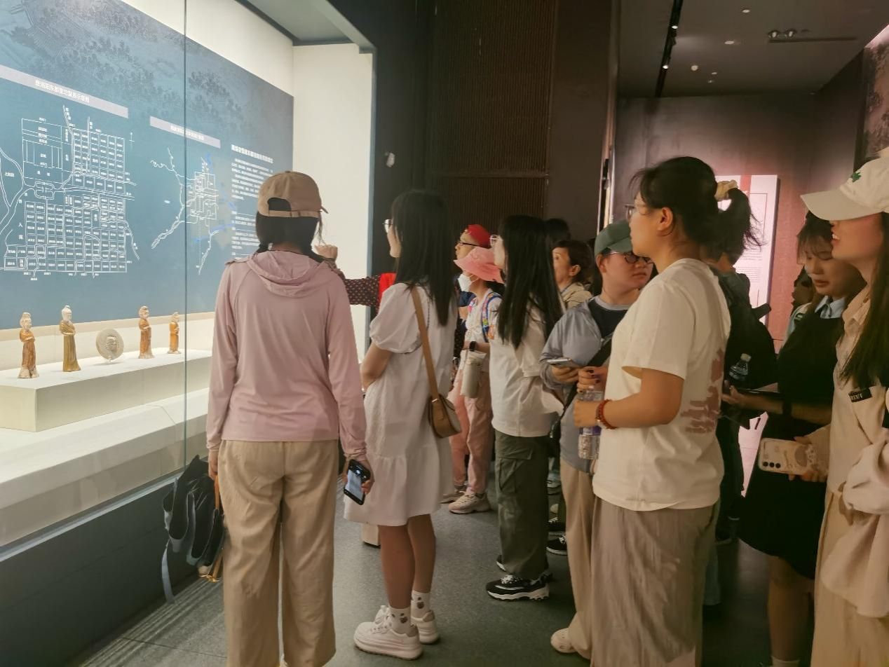 在洛八办,同学们认真了解洛八办在抗日战争过程中发挥的重要作用和突出贡献,深入领会党的革命事业取得胜利来之不易。在洛阳民俗博物馆,同学们采风有关民俗的陈设展品,了解洛阳地区的民俗特色。在大运河博物馆,同学们真切地感受到大运河对洛阳城市发展的重要作用及洛阳在隋唐时期的重要地位。至洛邑古城,在丽景门街道办事处党工委副书记秦磊等领导的陪同和讲解中,同学们饶有兴致地参观了“大袖衫”“汝阳刘”等颇具特色的非遗工艺及品牌,聆听了有关文峰塔(洛邑古城标志性建筑)的讲解,了解其历史渊源、沿革过程等。
