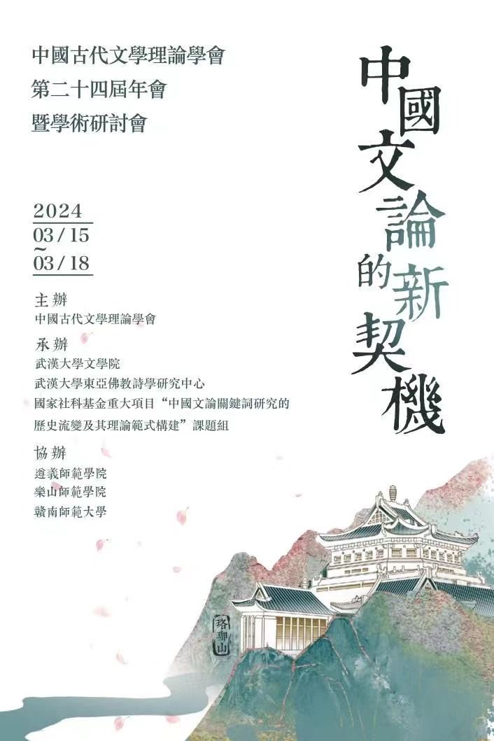 3月15—18日,“中国文论的新契机——中国古代文学理论学会第二十四届年会暨学术研讨会”在武汉大学召开。本届大会由中国古代文学理论学会主办,武汉大学文美高梅娱乐场