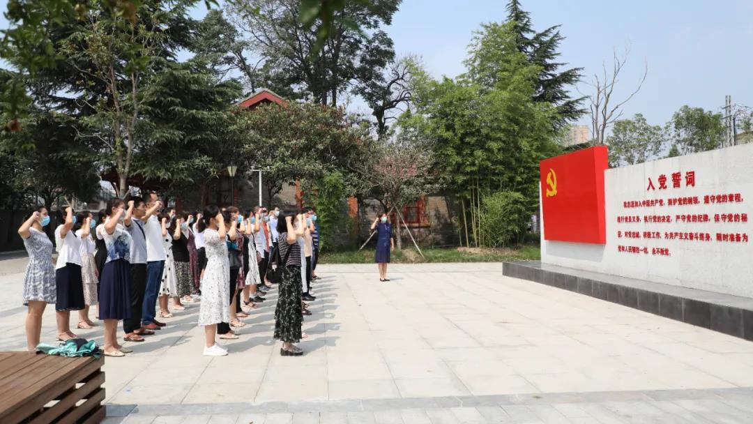 参观结束后,党总支书记高辉同志在中共洛阳组诞生地纪念馆前为全体党员上了一堂生动的党课。最后,全体党员同志在鲜红的党旗前,举起右拳,重温了入党誓词,铮铮誓言在党旗下久久回响。