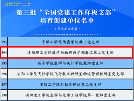 日前,教育部办公厅公布了第三批新时代高校党建示范创建和质量创优工作结果,经省级党委教育工作部门推荐、资格审查、专家推荐、教育部党的建设和全面从严治党工作领导小组成员单位集中审议、结果公示,我部教工第二党支部入选“全国党建工作样板支部”培育创建单位名单,这是美高梅娱乐场