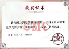 学生罗豪(指导教师运士伟)获得非数学组全国三等奖。