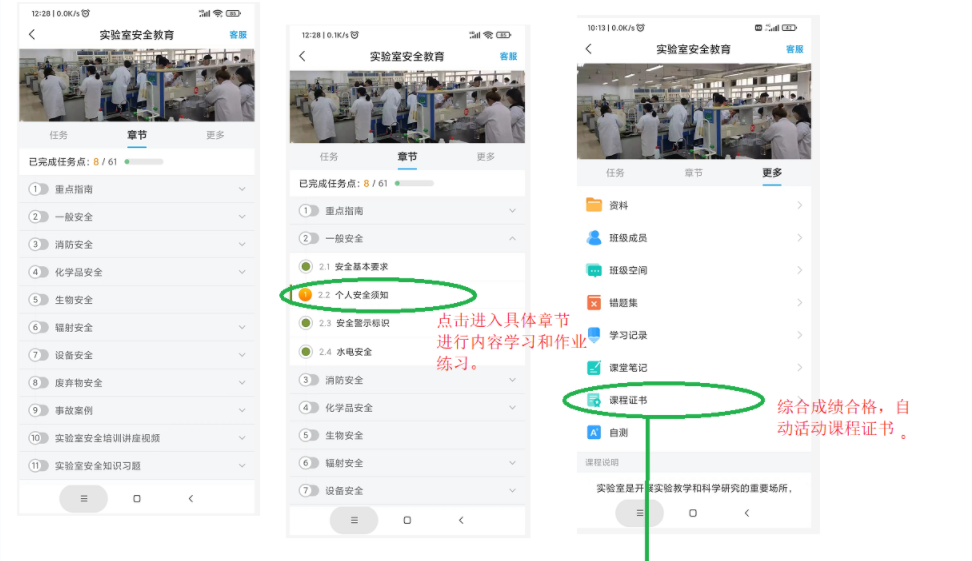 四、学习要求:所有考生需在学习完所有实验室安全课程及在线考试,请务必在6月10日前完成考试,考试成绩60分及以上为合格,发课程合格证书。