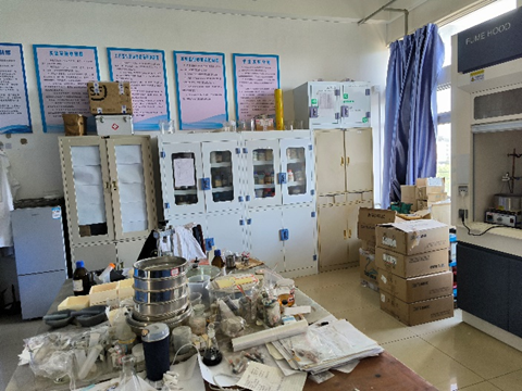 2.数学与物理教学部 S501实验室(科研):学生操作实验,接触碱性试剂,未佩配(佩戴)护目镜,防酸碱性专用胶皮手套等防护;操作台面空间拥挤,存在试剂液体倾泻等安全隐患;化学试剂无使用台账记录(学生反馈是从材料美高梅娱乐场