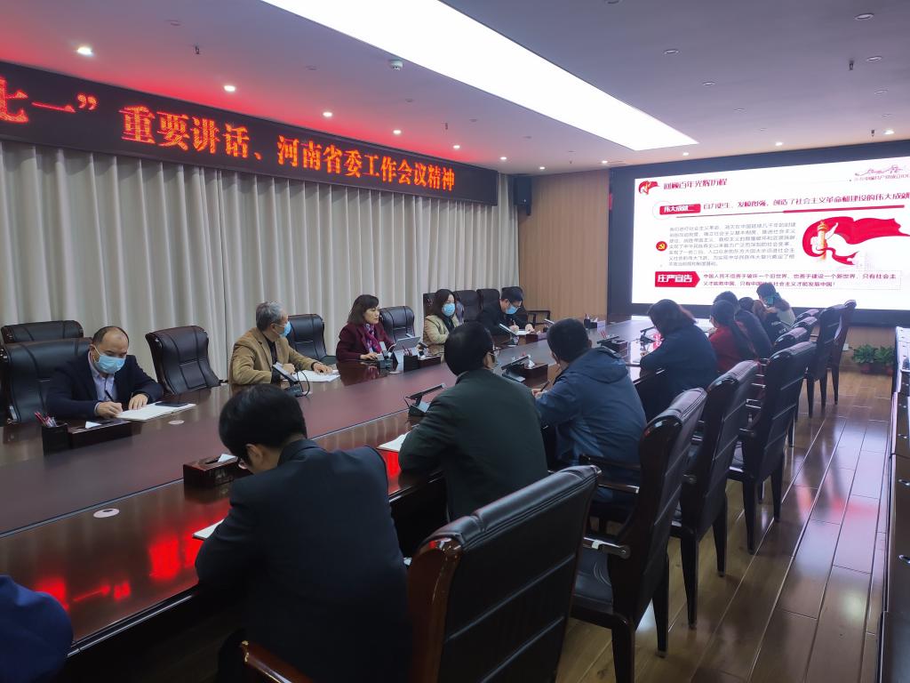 为深入开展党史学习教育,切实提高党员干部守初心、担使命的思想自觉和行动自觉,11月4日下午,党委委员、副校长丁梧秀以《学习贯彻“七一”重要讲话、河南省委工作会议精神》为主题在行政楼116会议室给教务处、质量监控与评估中心、招生就业处、实验室建设与设备管理办公室、工程训练中心全体党员干部上了一堂精彩生动的专题党课。