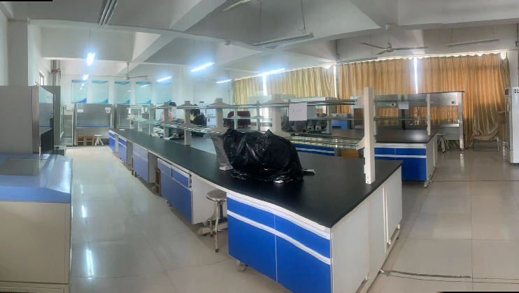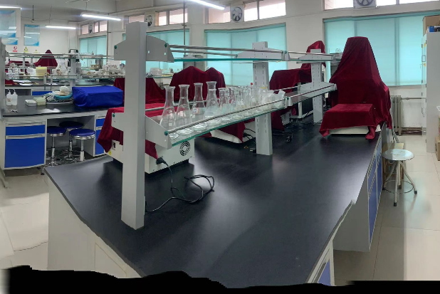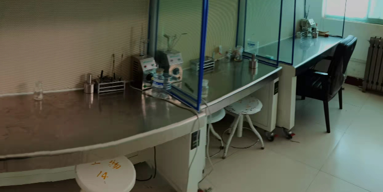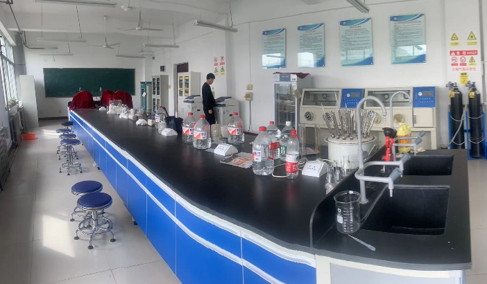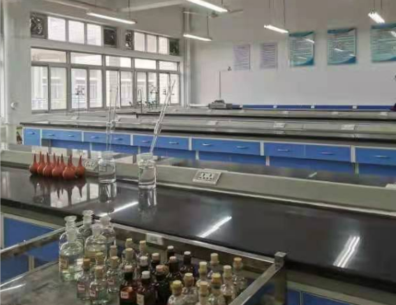 教学实验室,实验项目有: 溶解度试验;非水滴定法测定糖精钠含量;酸碱滴定法测定工业三乙醇胺含量;乙酰化法测定季戊四醇含量;邻甲基苯甲酸中邻苯二甲酸含量的测定;离子交换树脂层析分离混合氨基酸;乙酰乙酸乙酯萃取分离-邻二氮菲比色法测定铁;标准溶液的配制与标定;水的硬度的测定;硅酸盐中Fe2O3含量的测定(K2Cr2O7—无汞测铁);硅酸盐中Al2O3含量的测定(偏铝酸盐分离—EDTA滴定分析法);硅酸盐中二氧化钛的测定(过氧化氢分光光度法);钢铁中硅的测定(NaF-SnCl2还原-磷钼蓝分光光度法);钢铁中锰