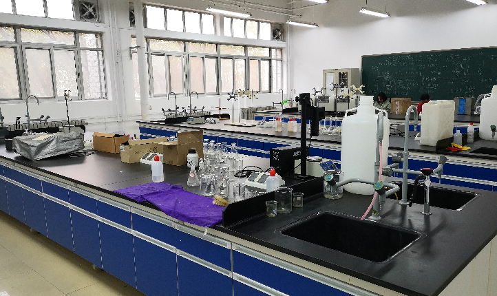 教学实验室,主要实验有水中铬的测定,水中硝酸盐氮的测定,水中溶解氧的测定,化学需氧量的测定,生化需氧量的测定,校园空气质量监测(二氧化硫,氮氧化物,TSP)