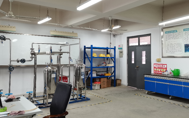 教学实验室,主要训练学生污水处理单元操作,为工作奠定基础。实验包括动态混凝法处理污水、膜法处理污水、膜生物反应处理污水、生物接触氧化处理污水、过滤法处理污水、色度废水浓度的测定。