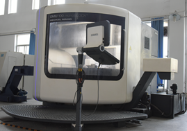 DMU-100五轴联动加工中心采用铸铁床身结构,具有良好的刚性和减震性,选用先进的线性滚动导轨,所有轴均配备光栅测量系统且分辨率≤0.001mm或0.001°,采用全闭环控制,主轴还配有温度可控的循环冷却系统。设备特点:工件一次装夹可实现五面加工,并且通过五轴联动控制可对复杂的空间曲面进行高精度加工,能够有效避免因多次装夹而造成的重复定位误差。设备参数:主轴最高转速:12000rpm;X、Y、Z最快移动速度:≥30m/min;最小定位精度:X、Y、Z≤0.001mm,B、C≤0.001°;刀库容量:32把;刀具最大直径:130mm;C轴360°旋转,B轴 -120°— +30°内摆动。 |