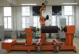 GWRS-10-2机器人焊接系统是基于6自由度机器人的机器人焊接系统,配备单轴横置变位机,变位机允许装夹长度≤2300mm,半径≤600mm,质量≤500kg的零件。焊接电源型号为DN-350R,直流MIG/MAG,输出电流范围为30-350A。焊枪允许焊丝直径0.8-1.2mm。