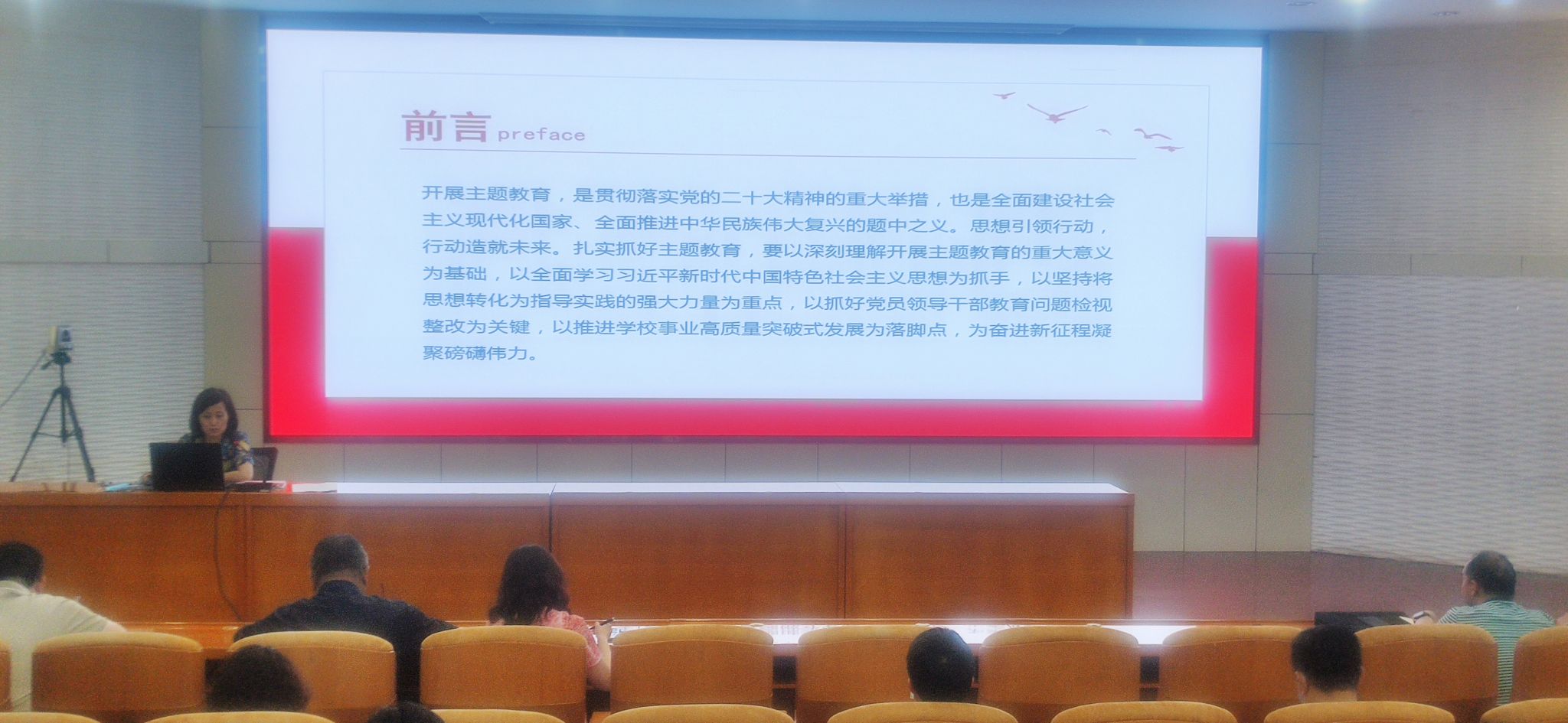 为深入开展学习贯彻习近平新时代中国特色社会主义思想主题教育,切实用党的创新理论统一思想、统一意志、统一行动,6月8日上午,在王城校区行政办公楼报告厅,丁梧秀副校长为实验室建设与设备管理办公室、教务处、教学质量监控与评估中心、招生就业处、工程训练中心全体人员开展了“扎实抓好主题教育 聚力奋进新征程”主题教育党课。