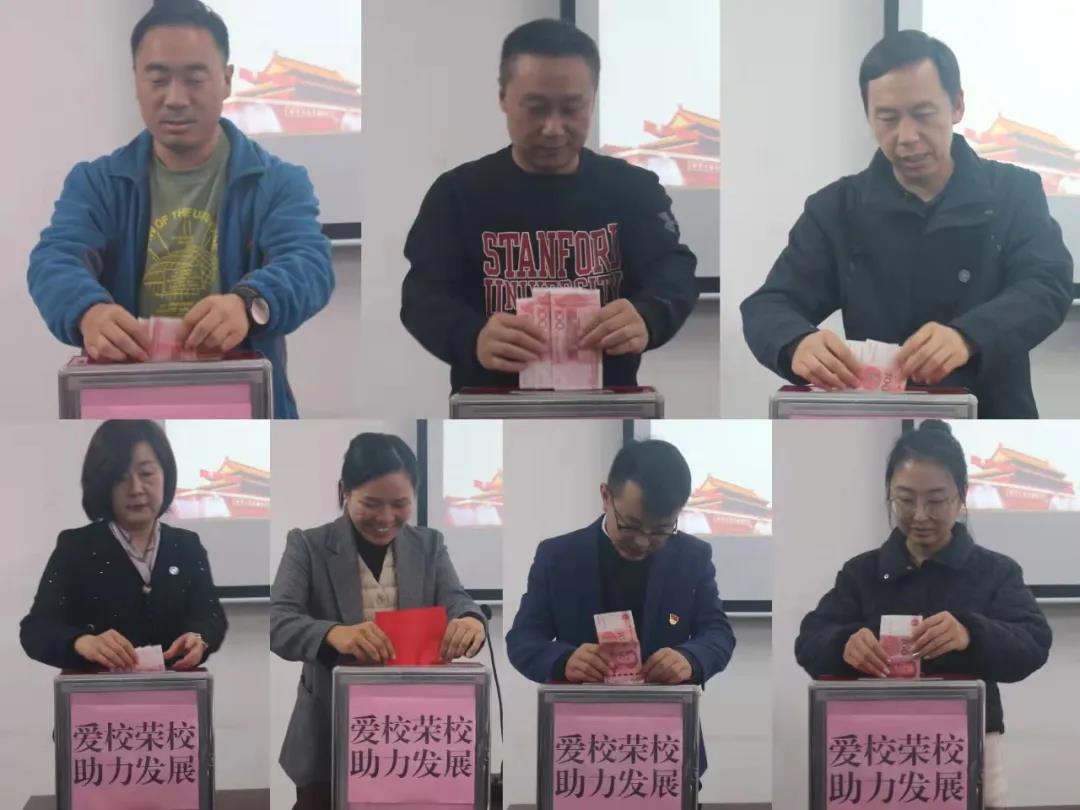 党政领导班子、学工队伍、教师代表依次上台进行了踊跃的捐赠。