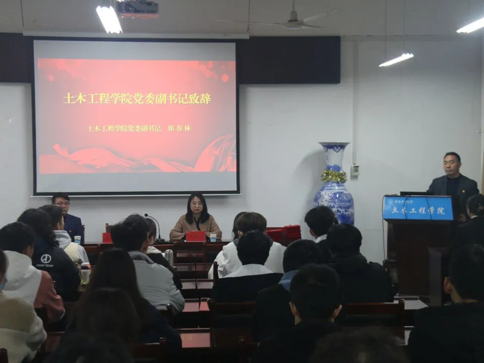 第十四届团委学生会成立大会于土木楼FM314举行。院党委副书记郭春林、学工办副主任段文峰出席本次会议,第十三届及第十四届团委学生会学生干部代表、21级全体干事参加本次大会,共计120余人。本次大会由团委副书记李翎飞主持。