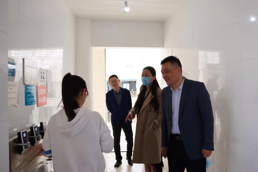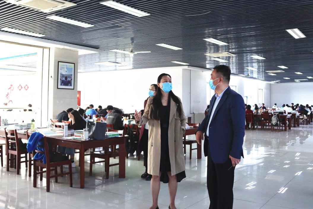 马珺首先考察了图书馆师生入馆疫情管控流程,对执勤安保和服务台职工给予肯定和慰问。她强调,大家一定要勤洗手戴口罩,做好自身防护、严格落实疫情防控管理要求,继续发扬坚守岗位、尽职尽责的精神。同时,她详细了解并检查了图书馆疫情防控管理工作以及相关安排情况。接着,马校长深入到书库与值班老师和自习同学们进行了亲切交谈,了解图书馆照明设施、学生饮用水等相关情况,并叮嘱图书馆要做好文化设施的建设。