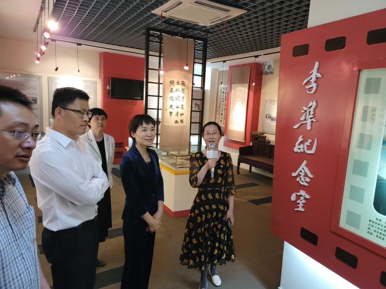 黄志全副校长及校办、人事处等相关部门负责人的陪同下,到开元校区图书馆参观了李进学艺术馆等四个特色展馆,图书馆雷海栋、谢琳惠同志全程陪同。