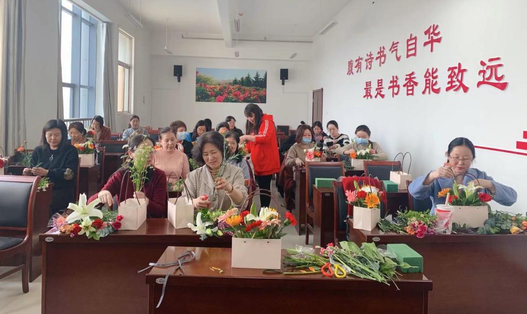 3月11日,为庆祝第108个“三八”国际劳动妇女节,图书馆分工会组织全体女职工在图书馆501开展了“喜迎三八 插花品香”主题庆祝活动。