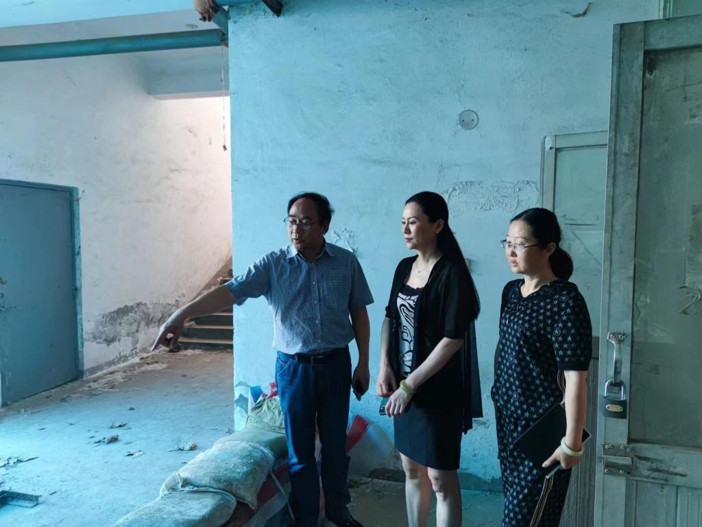 马珺副校长一行重点检查了王城校区公共教学楼地下书库的排水泵检修效果,外廊挡板、阻水沙袋等防汛设备物资的储备摆放;查看了开元校区博物馆外阳台防水层、落水管、玻璃加封的整改落实情况。