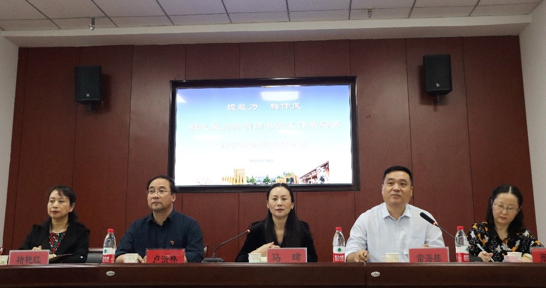 8月28日上午,图书馆召开“提能力 转作风 凝心聚力开创图书馆工作新局面”主题会议。马珺副校长出席会议,图书馆班子成员和全体馆员参加会议,会议由张昕宇副馆长主持。