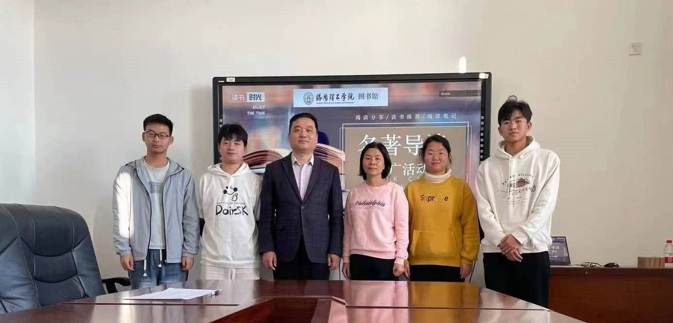 学生人文底蕴,激发学生课外阅读兴趣,培养同学们多读书读好书的良好习惯, 2022年11月24日下午图书馆举行“书香校园、品读经典:名著导读活动”。此次活动采取线上线下相结合的方式进行,图书馆馆长雷海栋、副馆长褚艳红、流通服务部、阅览服务部老师参加活动。
