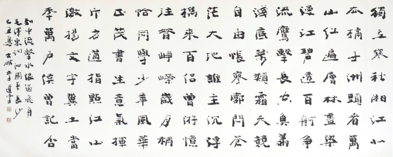 博物馆李进学艺术馆,这幅书法作品是为李进学艺术馆专门量身定做写的身毛主席的《沁园春·长沙》。李进学的字苍劲有力,从魏碑中求意趣,从碑刻中汲取营养,真正达到了形神兼备,再现了魏碑的那种大气磅礴、奇崛方雄的艺术风格。央视科教频道做过他的纪录片,称他为“中国当代的魏碑精神领袖”。
