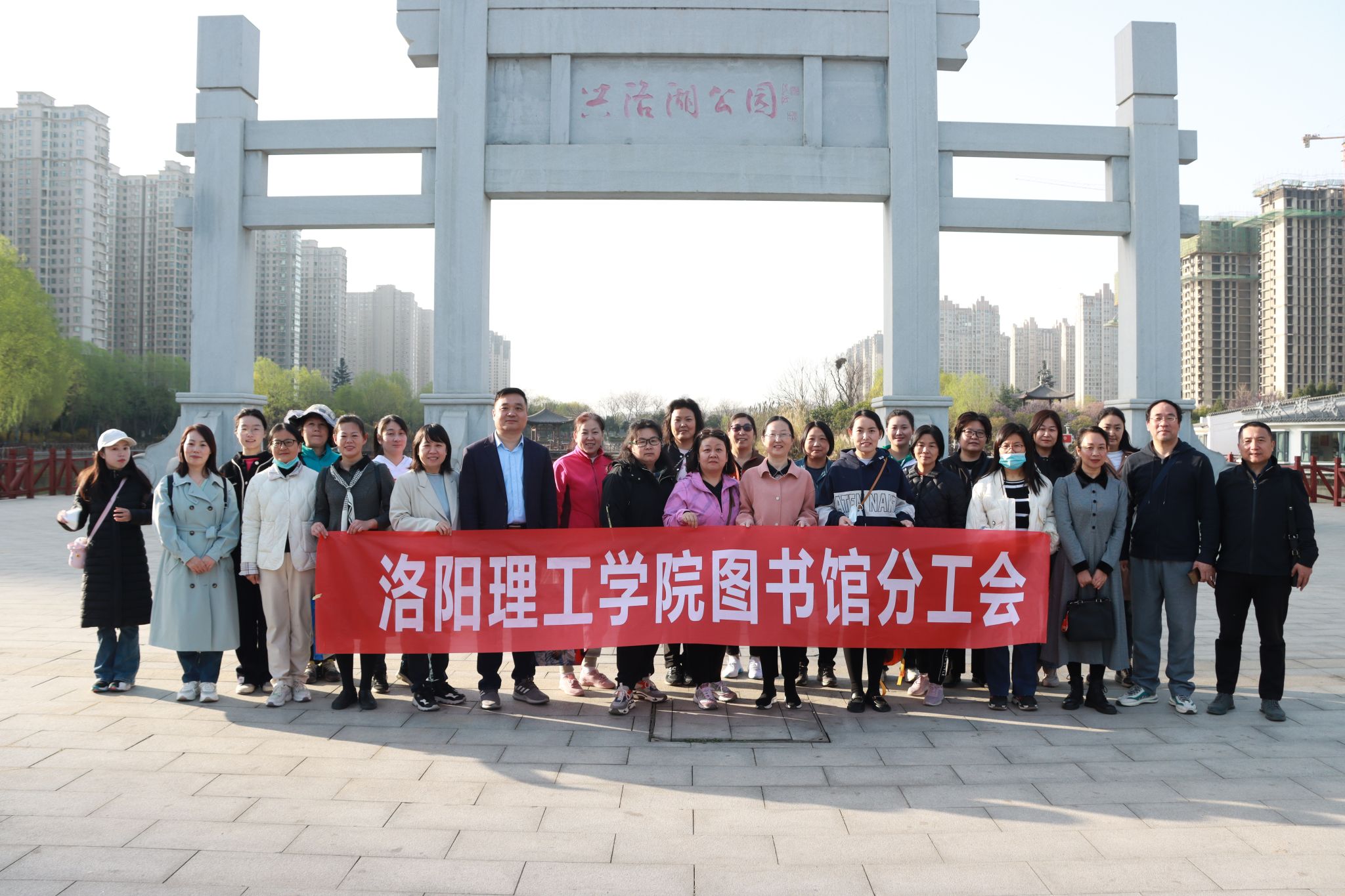 阳春三月,草长莺飞。为庆祝“三八”国际劳动妇女节,图书馆分工会全体女职工在分工会主席卢清林带领下于3月9日上午在兴洛湖公园开展“魅力女性,快乐健步”主题活动。