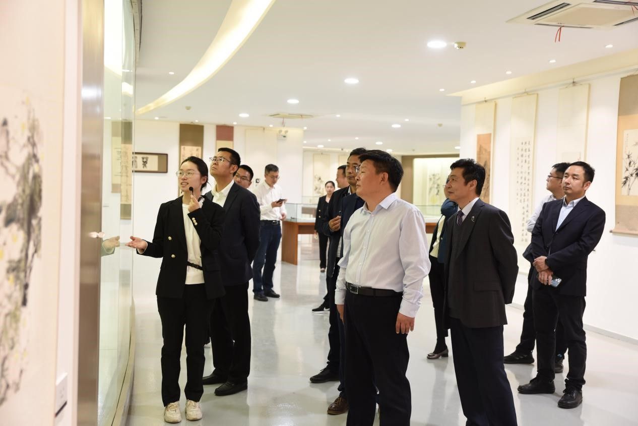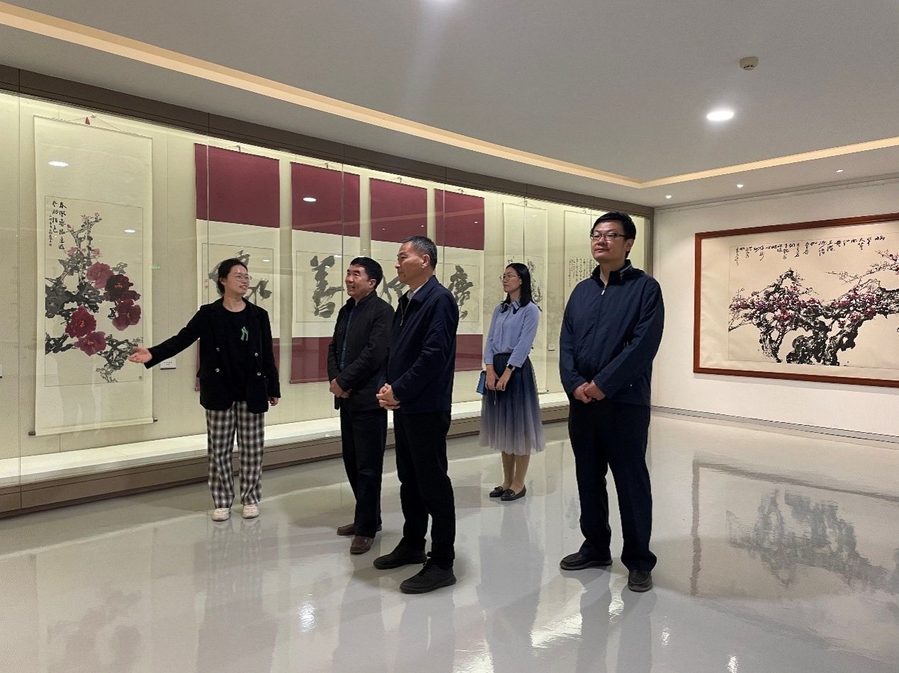 党委书记姚红梁的陪同下到博物馆参观指导工作。特藏部副主任王针臻、特藏部老师朱华丽、任洛汶参与了讲解接待工作。