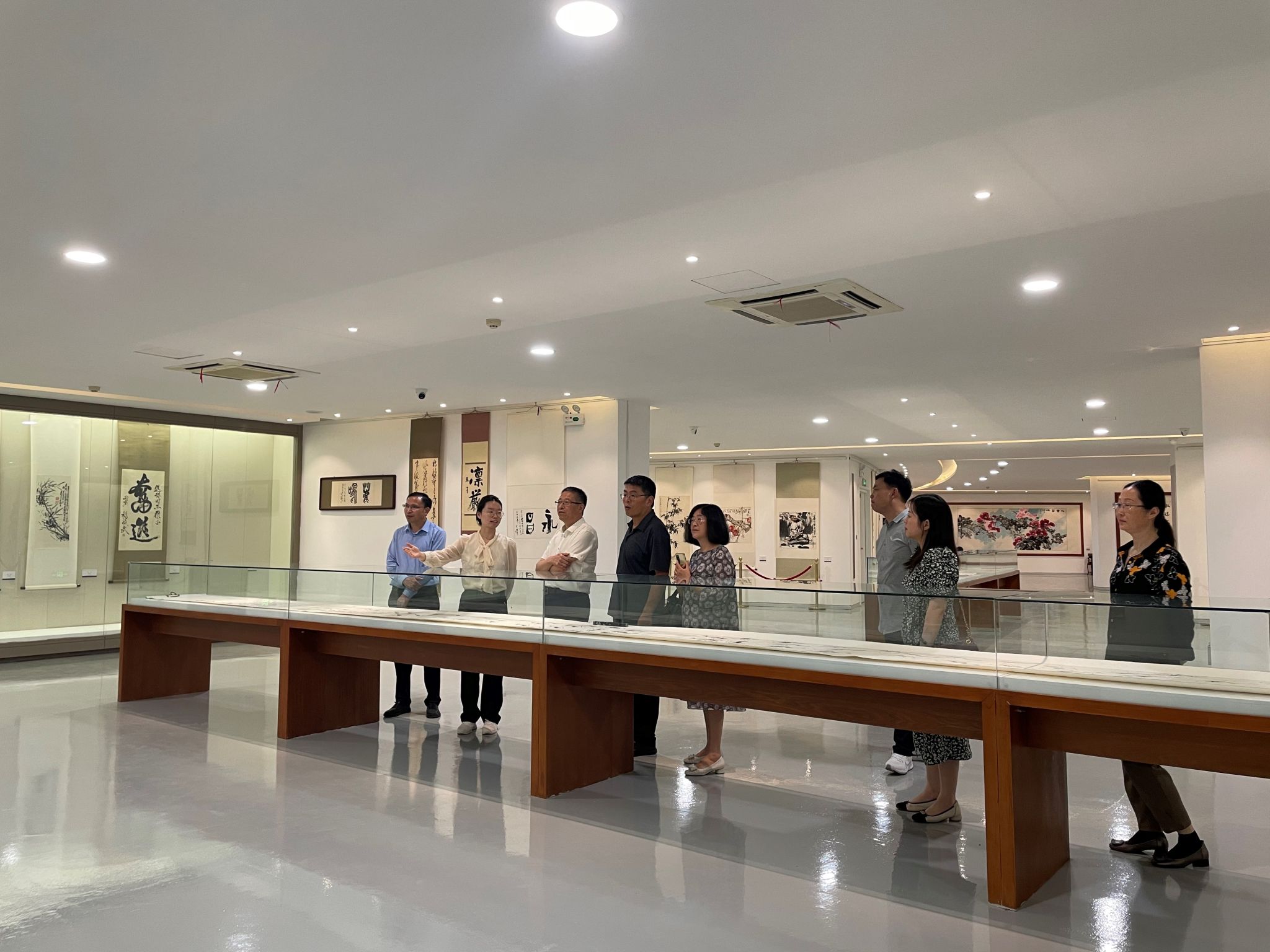 工会副主席王群芳等的陪同下到博物馆参观交流。图书馆副馆长张昕宇全程陪同,特藏部副主任王针臻、特藏部老师任洛汶参与了接待讲解工作。