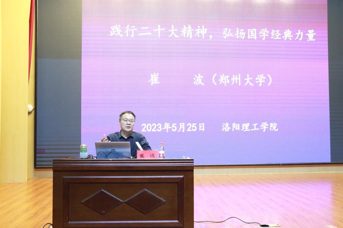 讲座中,崔波以《践行党的二十大精神 弘扬国学经典力量》为主题,深刻解读党的二十大报告中有关“文化影响力”的重要论述,阐述了党的十八大以来党和国家有关传承优秀传统文化的系列举措。他结合自身多年研读经典的心得体会,以阅读优秀传统文化经典如《周易》、《尚书》、《诗经》、《礼记》等为例,阐述了“何为国学经典”、“阅读哪种经典”、“经典何以有力量”、“敬畏经典文献”等内容,鼓励美高梅娱乐场