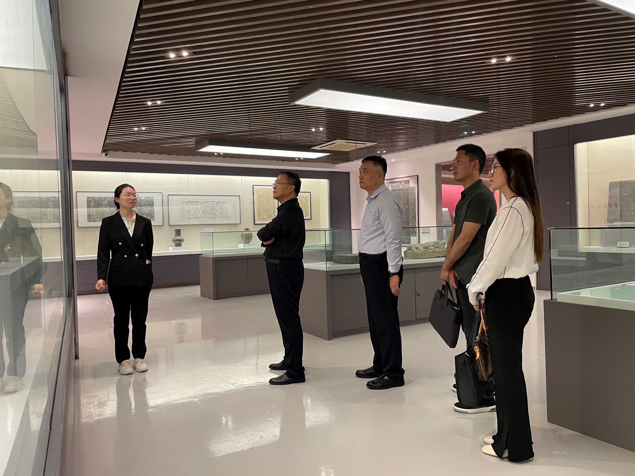 院长石念峰、国有资产管理处副处长张君晓的陪同下到博物馆参观指导工作。特藏部副主任王针臻、特藏部老师朱华丽、任洛汶参与了接待讲解工作。