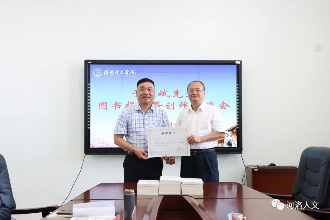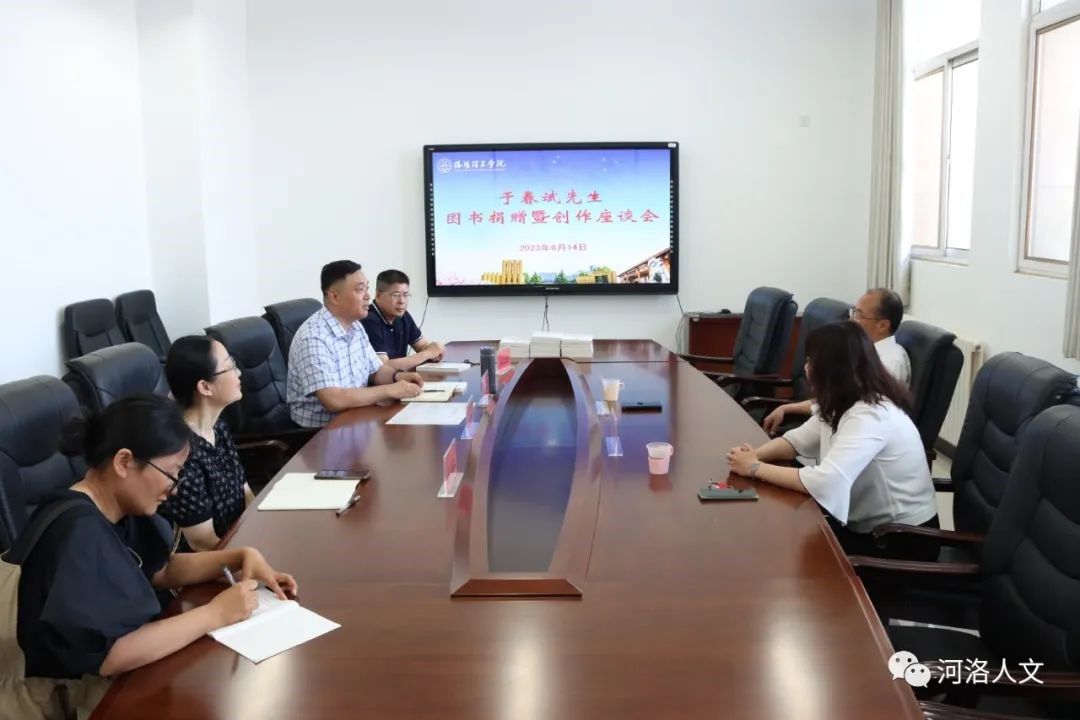 招生、就业工作中所能起到的作用,发表了看法与见解。于春斌先生结合多年现场探访古迹遗址的经历,畅谈了自己的切身体会和创作感想。对下一步河洛文化、客家文化走进校园,发掘古都历史,讲好洛阳故事,双方进行了讨论,达成了共识。