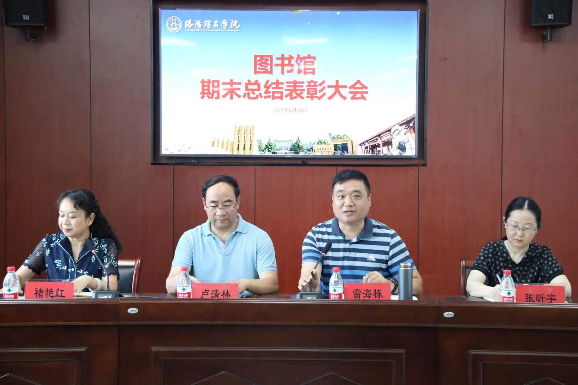2023年6月30日上午,在王城校区图书信息中心501会议室,召开图书馆期末总结表彰大会。图书馆党总支书记卢清林,馆长雷海栋,副馆长褚艳红,副馆长张昕宇及图书馆全体人员参加会议。会议由褚艳红主持。