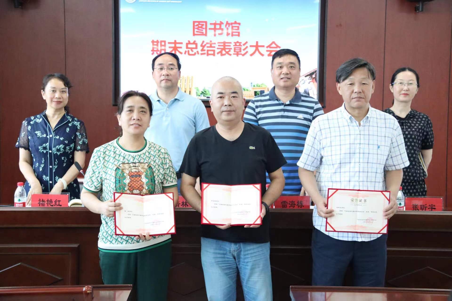 其次,图书馆领导班子对工作中表现突出的老师予以表彰,并为受表彰的老师颁发荣誉证书。