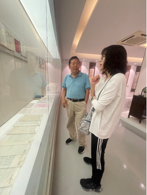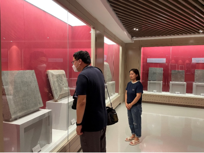 魏华莹教授、博士生导师在学报编辑部副主任刘保亮的陪同下到博物馆进行现场交流,特藏部副主任王针臻提供讲解接待工作。