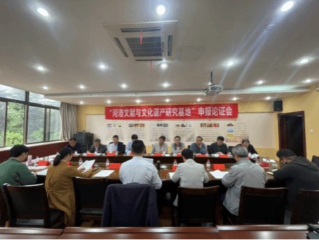 “河洛文献与文化遗产研究基地”申报论证会在图书馆召开,会议邀请洛阳民俗博物馆名誉馆长、二级研究员王支援,洛阳市社科联副主席蔡幼鹏、宋红伟,二里头夏都遗址博物馆馆长、研究员赵晓军,洛阳博物馆馆长、副研究员李文初,洛阳市非物质文化遗产保护中心主任赵博,中国文物学会理事、洛阳国家级非遗传承人、工艺美术大师高水旺,洛阳古瓷鉴赏博物馆馆长陈树威,河洛文化文献馆馆长郑学通,全国优秀博物馆志愿讲解员孙颂等专家学者,及美高梅娱乐场