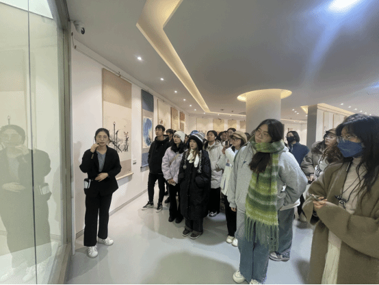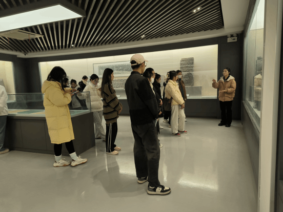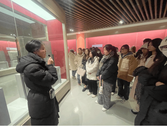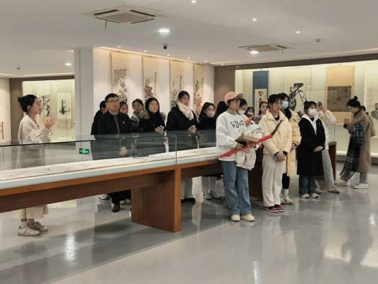 梅琳老师的带领下到博物馆开展文创活动。特藏部副主任王针臻、学生讲解员王茹、刘昱含参与了接待讲解工作。