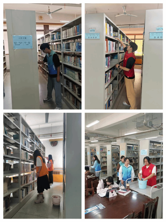 的青年志愿者们参与了以环境整治和图书整理为主题的志愿服务活动。