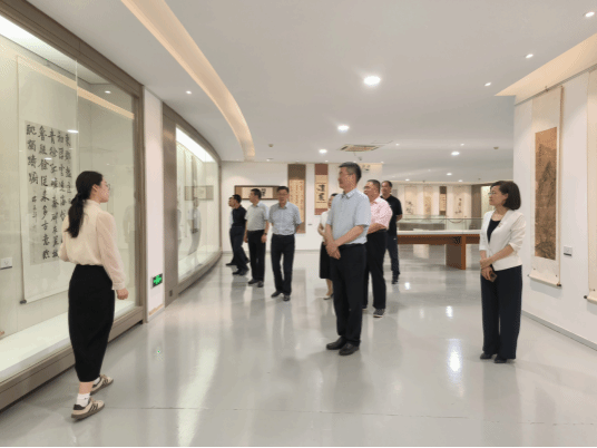 博物馆调研,图书馆党总支书记柴玉强、副馆长张昕宇陪同调研,特藏部副主任王针臻、特藏部老师任洛汶、朱华丽参与了接待讲解工作。