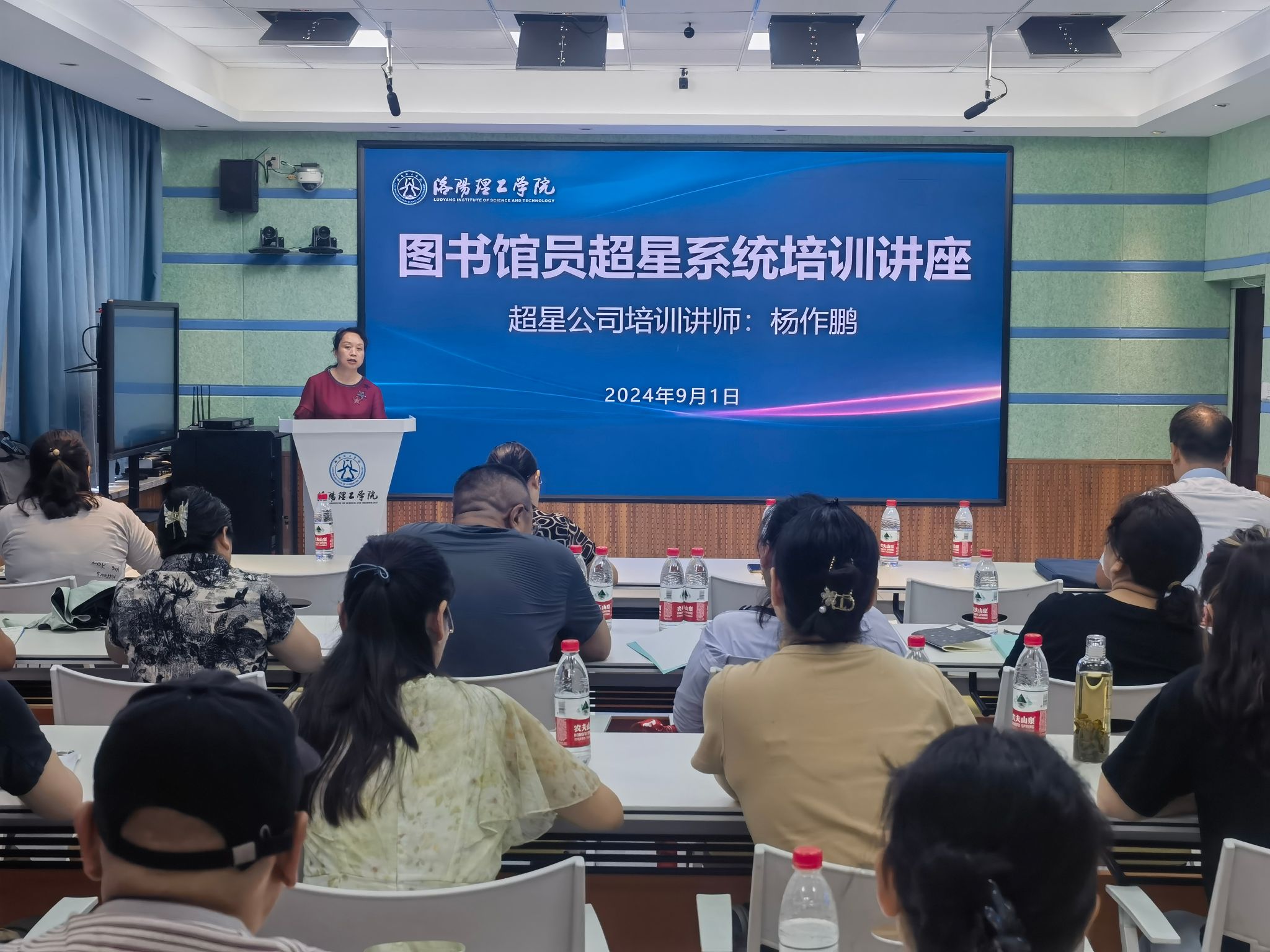 9月1日,图书馆在公共教学楼506智慧教室举办馆员职业素养技能培训专题讲座——超星系统图书服务平台培训,全体馆员及行政人员全部参加,图书馆副馆长褚艳红主持讲座。