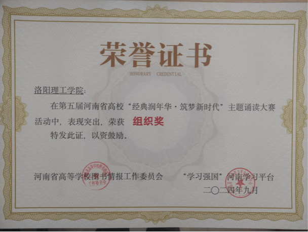 图书情报工作委员会及“学习强国”河南学习平台主办的河南省高校第五届“经典润年华 ·筑梦新时代”主题诵读大赛圆满落下帷幕,美高梅娱乐场