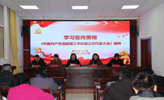 第三次党代会精神。图书馆全体教职工参加会议,会议由党总支书记赵建利主持。