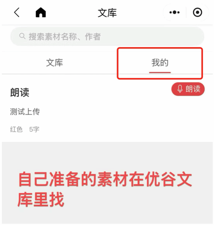 3.报名信息填写后,即可进入作品录制及提交,参赛选手可围绕“赓续华夏文脉·唱响时代新篇”主题,选择合适的素材进行诵读(可参考“学习强国”、“优谷文库”等资源库),搭配配乐进行创作(录制前在右下角“更换”选择自己喜欢的配乐);