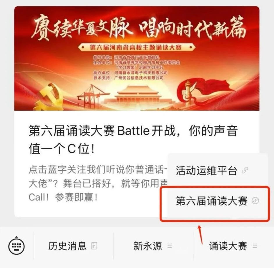 团委与图书馆联合举办第六届河南省高校“赓续华夏文脉·唱响时代新篇”主题诵读大赛,现将具体事宜通知如下: