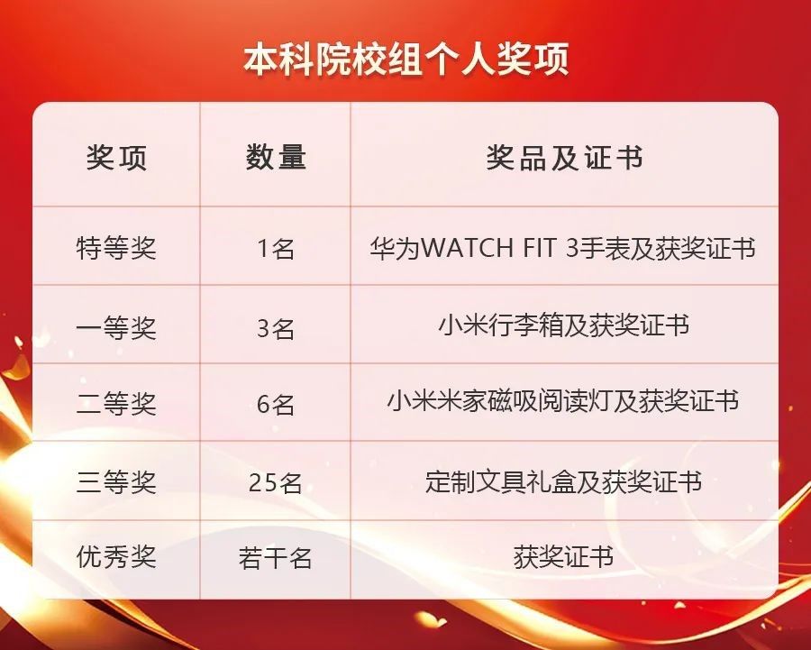 根据复赛两轮综合排名,本科院校组前10名选手进入线下决赛。根据复赛两轮综合排名,第11-35名评为三等奖,其余读者均为优秀奖。