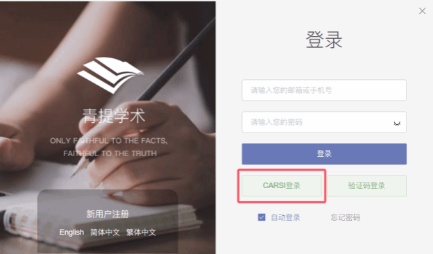 1.打开青提,点击用户界面最下方的“CARSI登录”按钮。