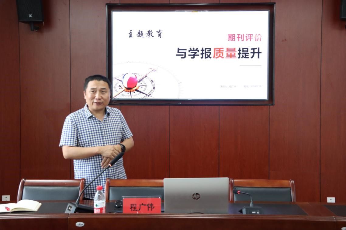 程广伟从期刊发展现状与评价、期刊评价的变迁、期刊评价的方法简介、办刊质量提升的思考四个方面展开讲述。程广伟表示,要牢牢把握主题教育“学思想、强党性、重实践、建新功”的总要求,准确把握主题教育的根本任务和具体目标,坚持学思用贯通、知信行统一,确保主题教育取得实实在在的成效。总支全体党员要以此次学习为契机,深入学习贯彻习近平新时代中国特色社会主义思想,不断汲取奋发进取的智慧和力量,更好用以武装头脑、指导实践、推动工作。